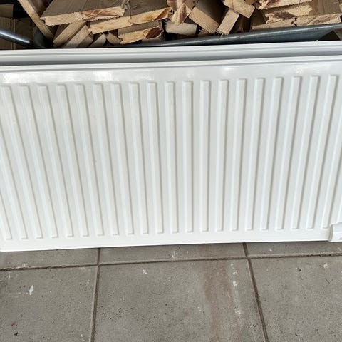 Smal panelradiator vit 60x45 med väggfästen