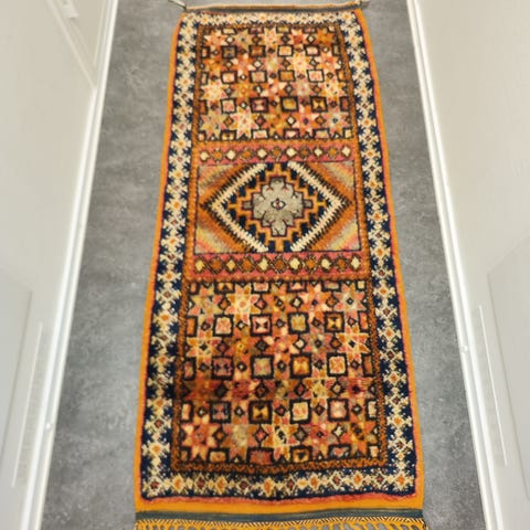Den här mattan bär på historia, hantverk och hjärta – ett unikt exemplar som ger värme och personlighet till vilket rum som helst.