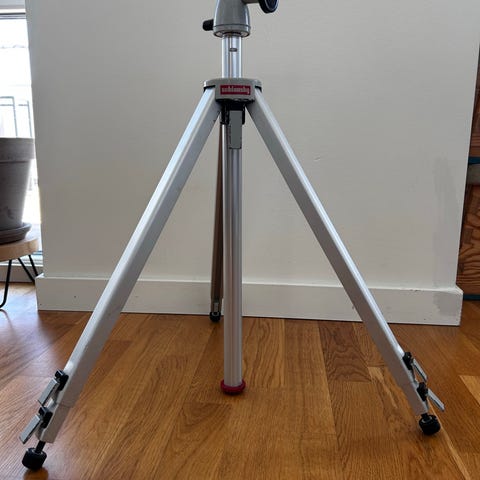 Linhof Combi-Profilstativ Mod. S 79 kamerastativ i aluminium. Trebensstativ med tre sektioner och justerbara benlås. Utrustat med fäste upptill för montering av kamera eller annan utrustning. Gummifötter i nederkant ger stabilitet mot underlaget. Passar för fotografering eller annan användning där ett stabilt stativ behövs.
