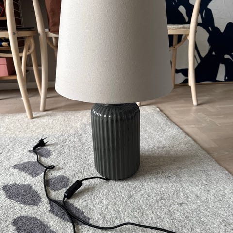 Skrivbordslampa i fin dov grön färg. Perfekt att ha på det skrivbordet eller på nattduksbordet.