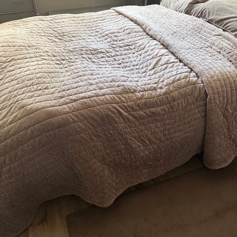 Quiltat överkast för enkelsäng, från Indiska, bomull i beige och vitt. Mycket gott skick. Använt i rök- och djurfritt hem. Finns i Örgryte.