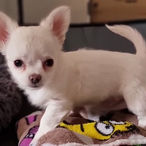En liten Chihuahua blandning tik leveranklar. Kommer väga ca 3 kg som vuxen . Är korthårig. Hon är blandning mellan nakenhund och chihuahua.