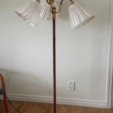 Stilfull äldre golvlampa som behöver ses över.