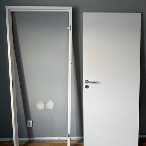 Innerdörr med karm från Swedoor. Dimension 7x21 så karmen är ca 70x210cm.
