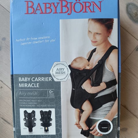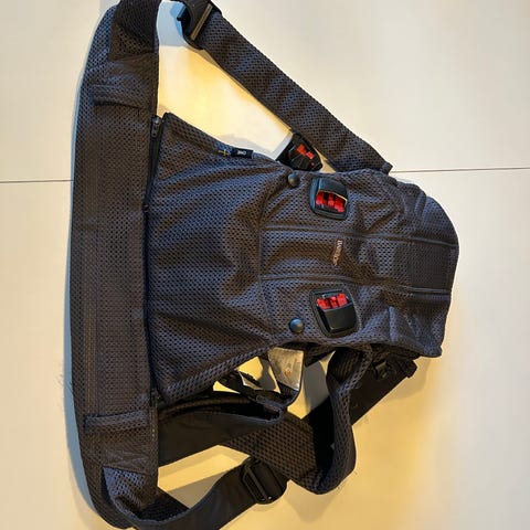 Både bärsele och babyskydd är inköpt nytt 2020.