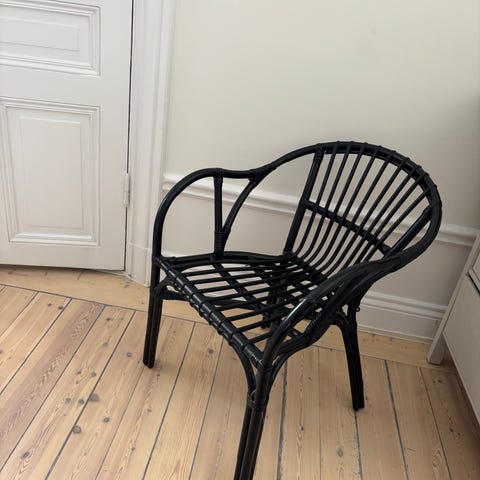 Stol i svart metall med ribbad sits och rygg.