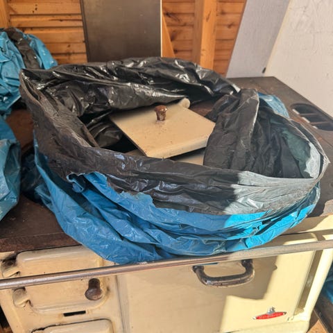 Vedeldad fristående spis. Spisen har två runda kokplattor upptill samt luckor framtill för eldning och askuttag. Bredd 30 cm, höjd 80 cm, djup 60 cm. Rökkanalsanslutning finns på sidorna och baksidan.