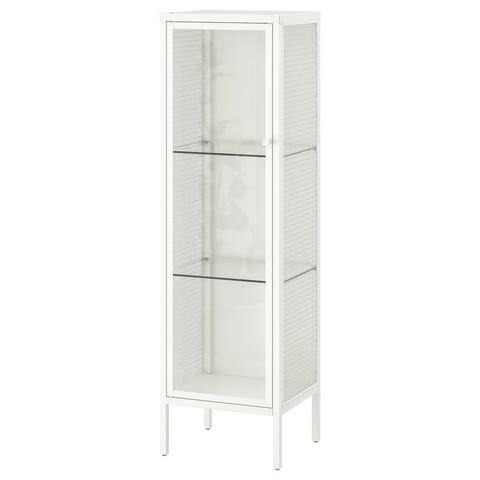 Säljer ett superfint vitrinskåp i absolut nyskick. Hyllor, väggar och dörren är glas. Topplattan och golvplattan är vita träplattor. Konstruktionens stänger, ramen och hyllramarna, är av metall. Om man vill är det enkelt och lämpligt att fästa belysning i taket, på insidan. En gång inköpt på Ikea. Finns på Bergnäset i Luleå. Se gärna även mina övriga annonser. Hämtas lördag den 9 maj. Monteras isär av den som hämtar.