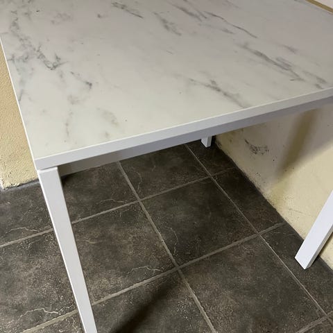 SFint köksbord för 4 personer. Vit och ska vara som marmor. Vackert mönser