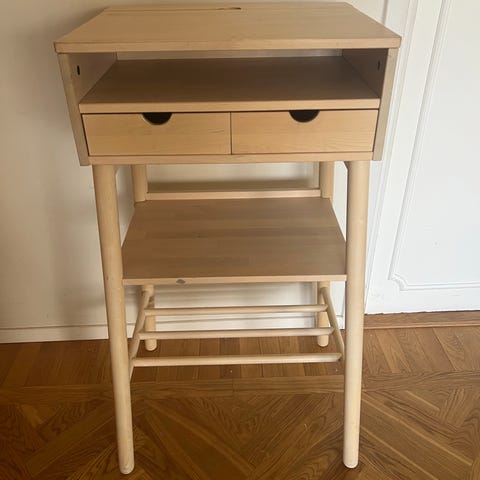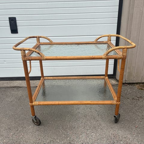 Rullvagn i bra skick. Stilren i massiv björk. Funkar bra som avlastningsyta i kök eller hall. Nypris 1995;-