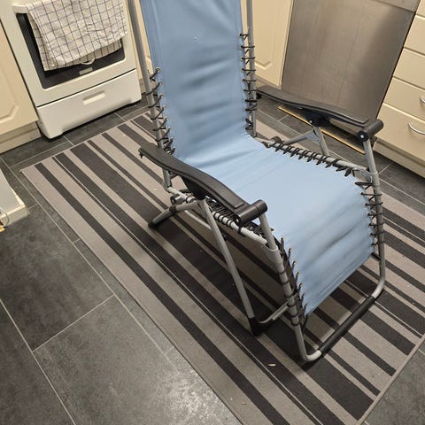Stolen har armstöd och justerbar ryggdel som kan fällas bakåt för mer avslappnad position.
