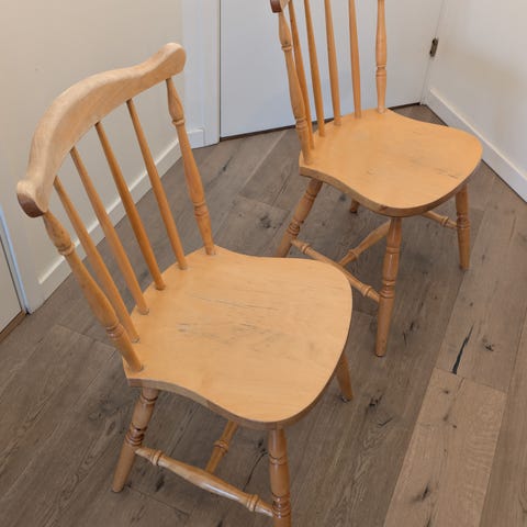 2st fina vita stabila pinnstolar i massivt trä med armstöd