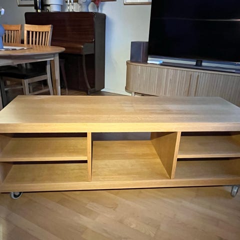 TV-bänk svart. Två skåp på kanterna. Resten öppet. Mycket lik Mios Salerno.