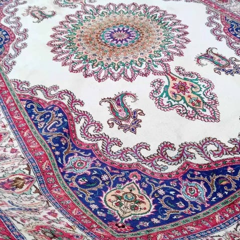 Detta är en äkta persisk silkmatta som vi inte fått använding för (passade inte vår lägenhet i storlek)och bestämt oss för att sälja. Ni är välkomna att komma och titta på den vid intresse. Kvitto finns och även ett skriftligt kvitto kan vi fixa på plats.