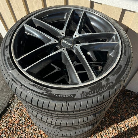 4 st Monaco wheels CL2 gloss black i använt skick säljes, sitter på Hankook sommardäck med ca 2-3 mm mönster kvar.