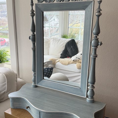 Fin spegel att ställa på bord/byrå eller hänga på vägg. Fint skick !