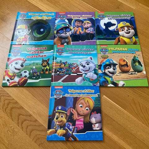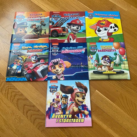 Ett bokpaket med 6 stycken Paw Patrol-böcker. Alla böcker är i väldigt fint skick och kommer från ett djur- och rökfritt hushåll.