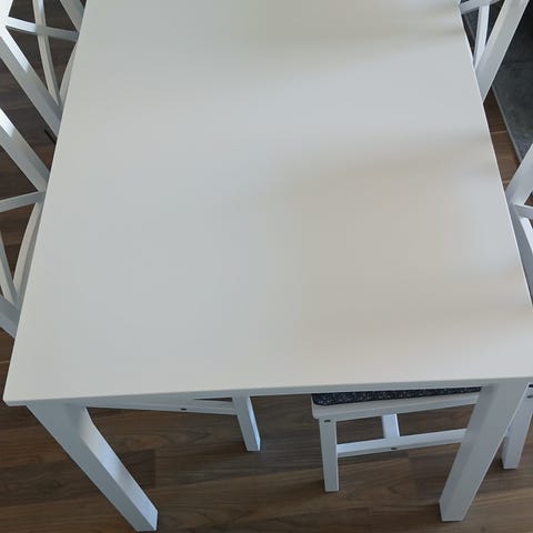 Bordet från IKEA är jättefint , dock finns en reva i bordet, se bild. Vi hade tänkt köpa stift och täcka , vilket vi tror funkar utmärkt. Nu har vi hittat ett annat bord så provar därför sälja detta.