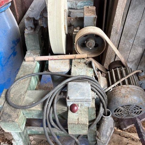 Ganz bandslipmaskin med mycket kraftig trefas elmotor. Maskinen är utrustad med slipband och har en plan anläggningsyta för slipning av trä eller metall. Elmotorn är monterad på en tung och stabil ram och ansluts via trefas industrikontakt. Lämplig för verkstad eller hobbybruk där stationär bandslip behövs för bearbetning och finslipning av material.
