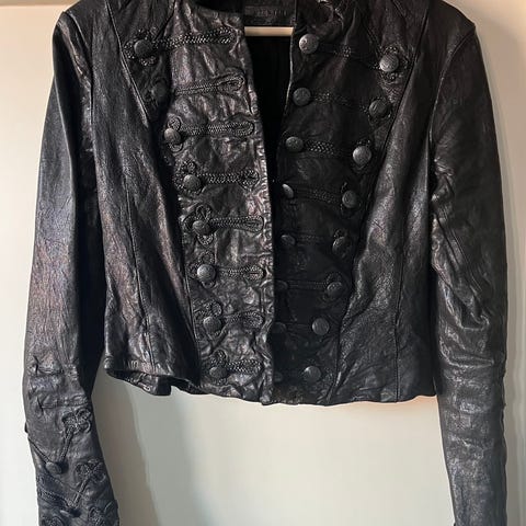 Snygg svart jeansjacka med skinndetaljer (inte äkta skinn❗️) storlek M, sparsamt använd!