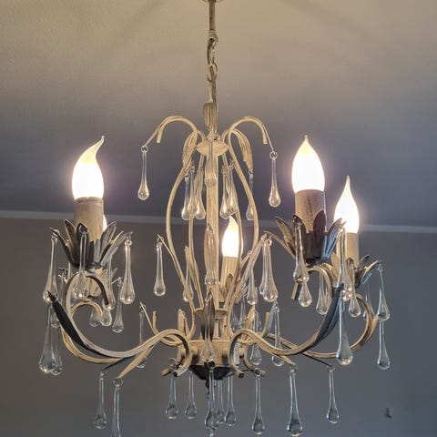 Säljer en mycket fin takkrona med glasprismor som är typisk 60:70-tals stil