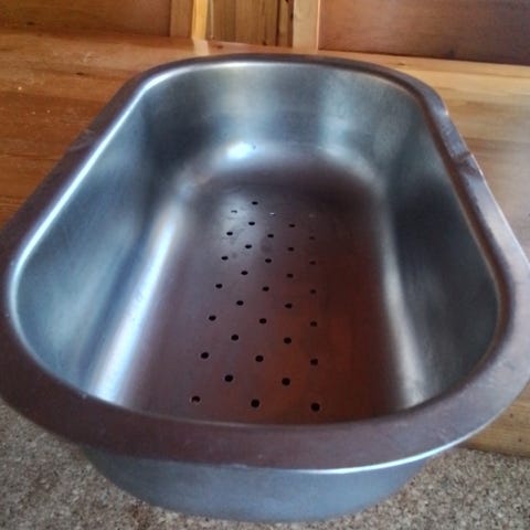 IKEA durkslag avlång modell. är i rostfritt stål med sidor i gummiband så den sitter stabilt