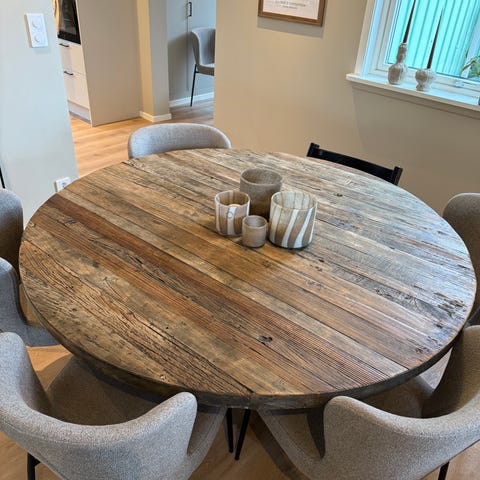 Matgrupp Woodenforge 120cm med fyra stolar. Nypriss 10,000. Kan köpas separat. Bara upphämtning
