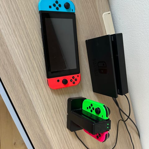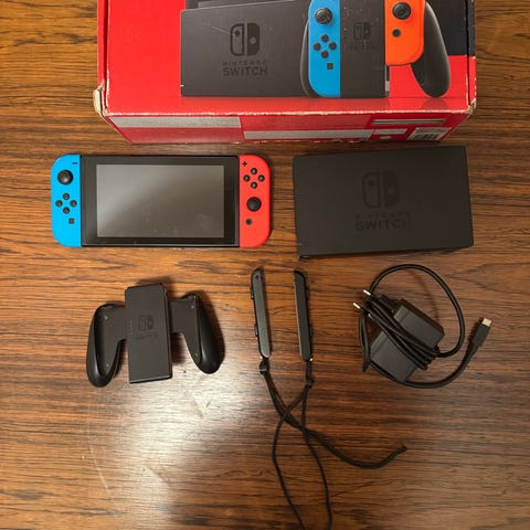 Nintendo Switch spelkonsol med Joy-Con neon röd/blå och Pro Controller