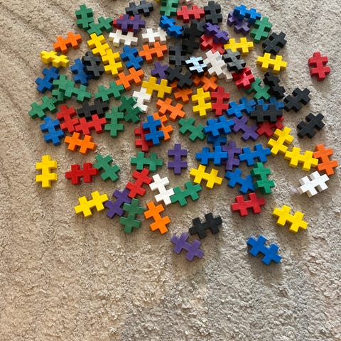 Plus Plus byggbitar i mixade färger. Byggdelar i plast med det karakteristiska dubbel-plus-formatet som kan sättas ihop i olika riktningar. Passar för kreativt byggande av figurer, fordon och andra modeller. Lämpligt som konstruktionsleksak för barn som gillar att bygga och skapa egna former.