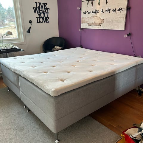 Bäddmadrassen är väldigt bekväm och är från Wellpur, tyvärr sliten/smutsig i tyget.