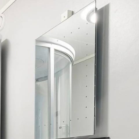 Stilren spegel med stor yta. Enkelt att byta lysröret. Fullt fungerande, utbytt pga vi införskaffade spegelskåp över handfatet istället.