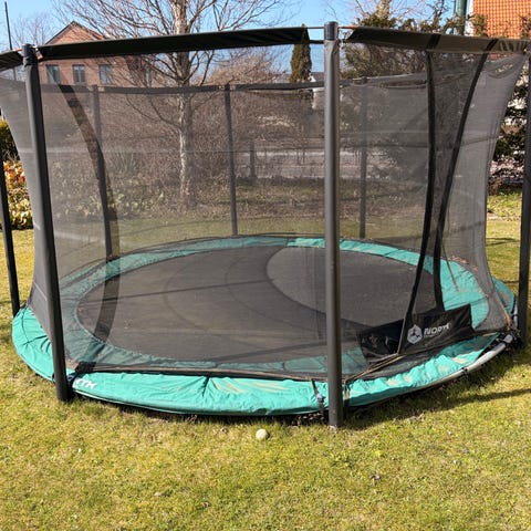 Berg studsmatta med skyddsnät uppe och nere 4,3m