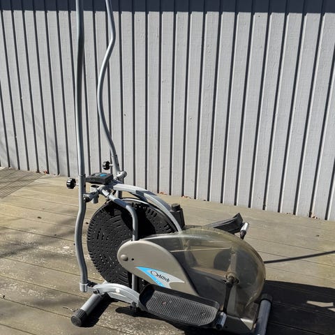 Bortskänkt!!! Abilica crosstrainer i grå färg. Maskinen har fasta och rörliga handtag med greppvänligt material samt stora fotplattor. Lämplig för konditionsträning och helkroppsträning i hemmet. Drivs med rem och har ett svänghjul placerat framtill i kåpan. Passar för inomhusbruk och kan användas av både nybörjare och mer erfarna motionärer.