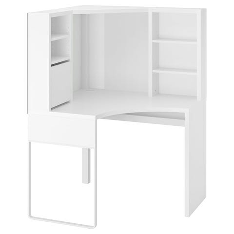 Säljer ett Micke hörnskrivbord. Bra skrivbord i barnrum i okej skick. Har ett jack i bordskivan( se bild) I övrigt rent och fint.