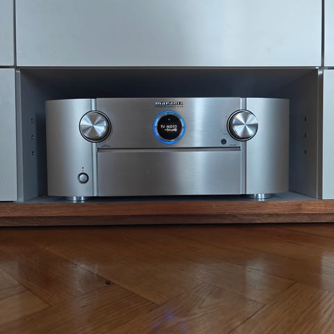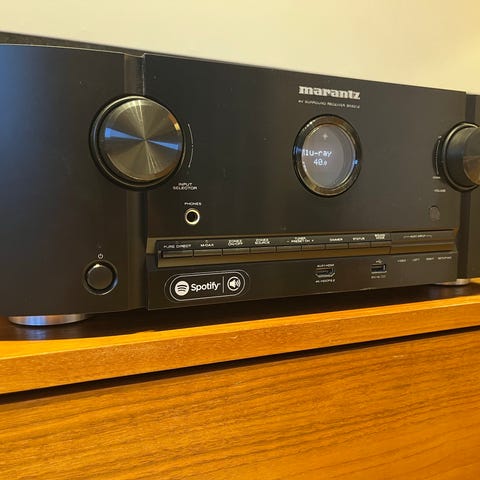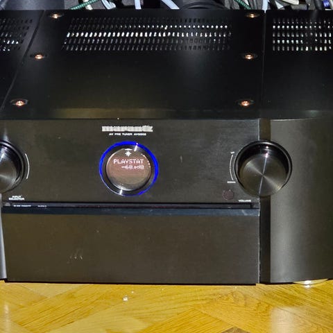 Marantz AV surround receiver SR 4003 + Dali elagance 01 satelliter + subbas i samma serie. Både receiver och högtalare har några år på nacken men spelar väldigt bra och tar liten plats. Högtalarna är i aluminiumcase och mäter 120 mm bred 1800 mm höjd och 90 mm djup. Väggfästen till alla fem högtalarna. Receivern saknar fjärr men finns att beställa.