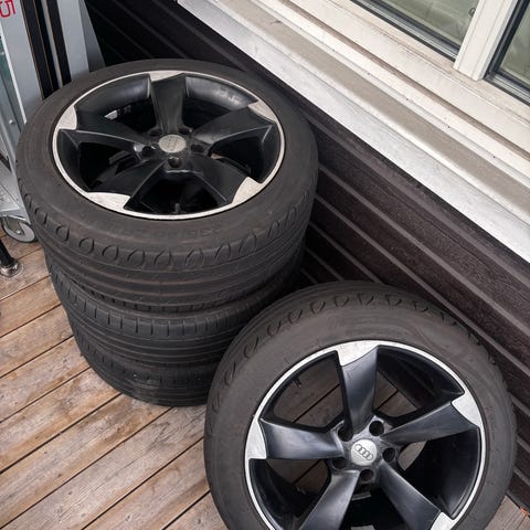 Saknas navringar till några av fälgarna men köps 4st nya för nån hundralapp på biltema eller försäljare av däck och fälg.