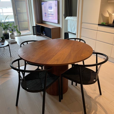 Totallängd: Med båda skivorna monterade blir bordet cirka 210 cm långt, vilket ger plats för upp till 8 personer. I toppskick se bilder!