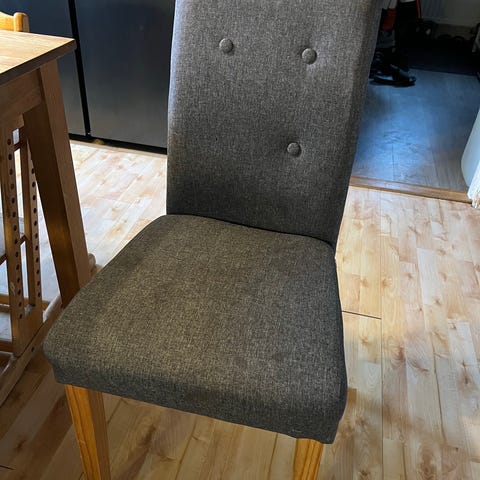 Har 8 st klädda stolar i grått tyg