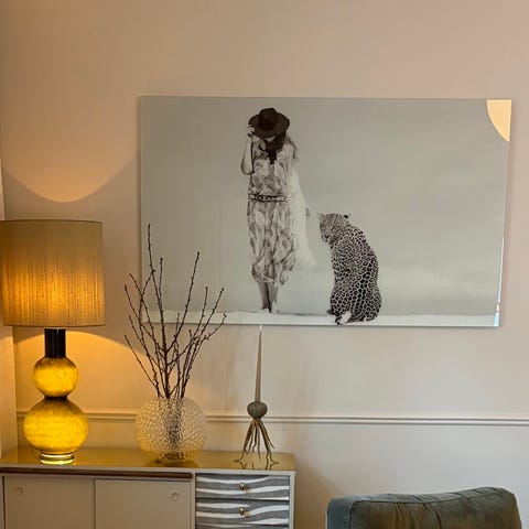 Tavla, olja på canvas med färgstarka figurer på svart bakgrund