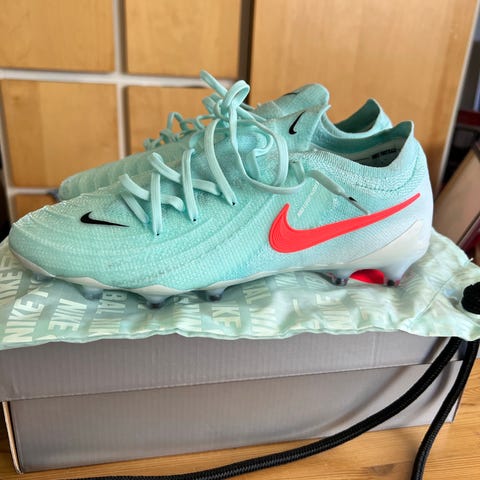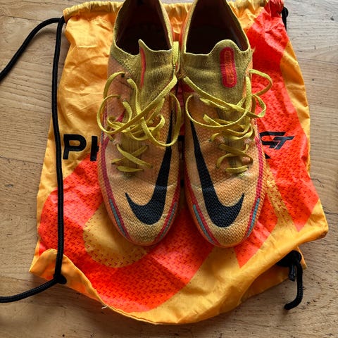 Nike Phantom fotbollsskor i gul och orange färg med svarta detaljer. Skorna har dobbar anpassade för spel på gräsplan och konstgräs för. Skorna är sparsamt använda och dobbarna är fortfarande i bra skicka. Storlek 42.