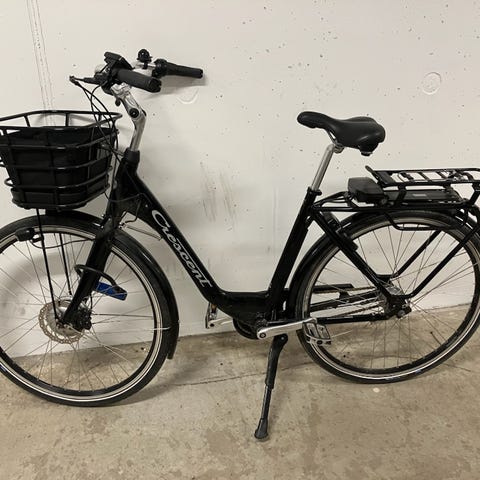 Inköpt 2023 och kvitto och nycklar finns liksom uttagbart batteri. Svart Innerpåse till cykelkorgen medföljer liksom en laddare till batteriet.Cykeln är i fint men använt skick.