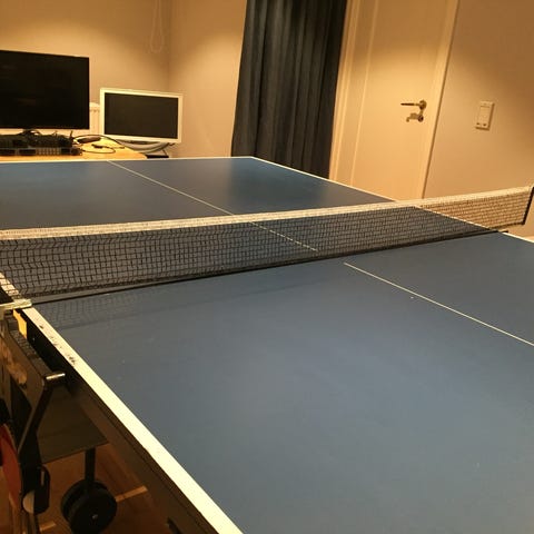 Bordtennisbord i 75% av standardstorleken, utrustat med ett praktiskt hopfällbart system. Utmärkt studs och spelkänsla, jämförbart med ett fullstort bord.
