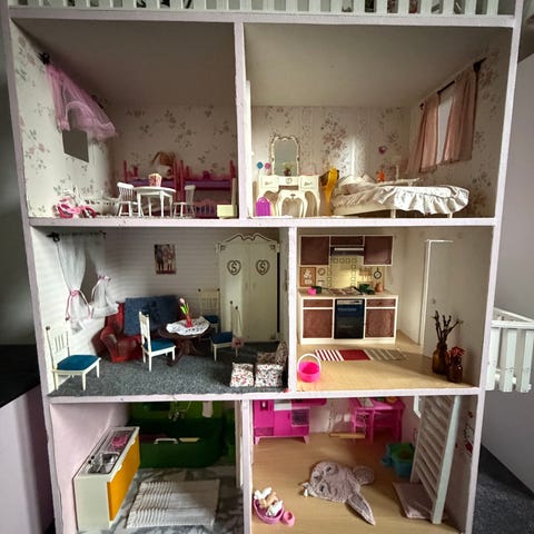 Tapetserade väggar och rymlig höjd! Passar bra till Mailegs möss och kaniner.