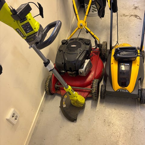 CGarden 9047037 gräsklippare eldriven grön, och 2 st grästrimmer.