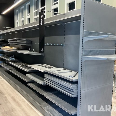 Högkvalitativt hyllsystem för butik eller showroom. Perfekt för detaljhandel eller utställning.