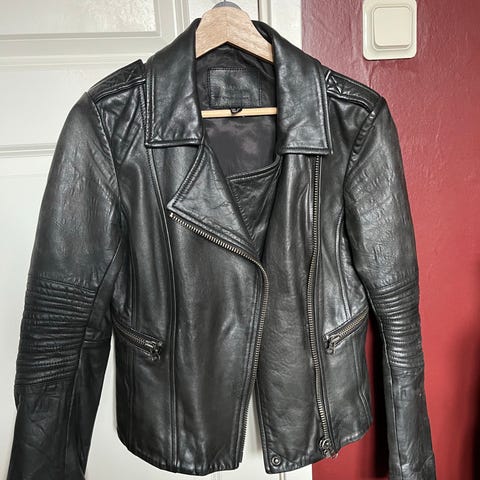 J. Lindeberg jacka för dam i svart läder, storlek 36. Jackan har quiltat mönster och rak passform med lång ärm. Den stängs framtill och har markerad nederkant samt diskreta sömdetaljer. Yttermaterial i läder med fodrad insida för ökad komfort. Passar som vardagsjacka eller lättare ytterplagg under svalare väder.
