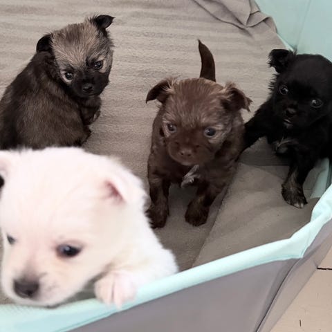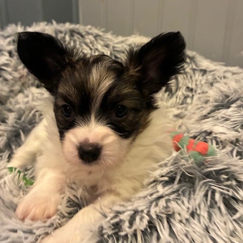 Båda föräldrarna är otroligt fina individer med ett lugnt och kärleksfullt sätt. De är följsamma, trygga och väldigt sociala, vilket också speglar sig i valpen. Pappan är en blandning av tysk spets, japansk spets och pomeranian, medan mamman är chihuahua och papillon.