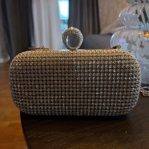 Väskan öppnas med mycket vackert spänne, genomskinlig sten.