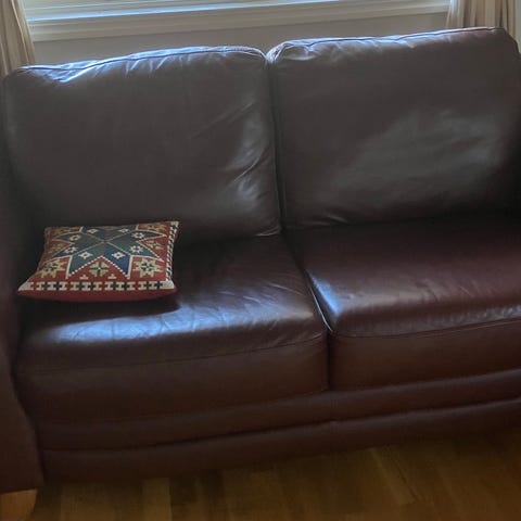 Liten brun skinnsoffa