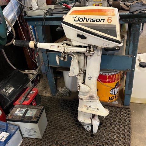 8 hk i välanvänt skick men funkar,kylvatten kommer,okänd årsmodell, ingen tank,